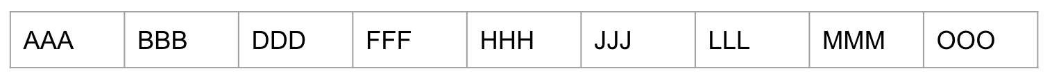 위와 같은 데이터가 데이터베이스에 저장되어 있다고 가정해보자. 인덱스가 없는 상황에서 MMM이라는 데이터를 조회하려면 AAA 부터 총 8건의 데이터를 검색해야 MMM을 조회할 수 있다.